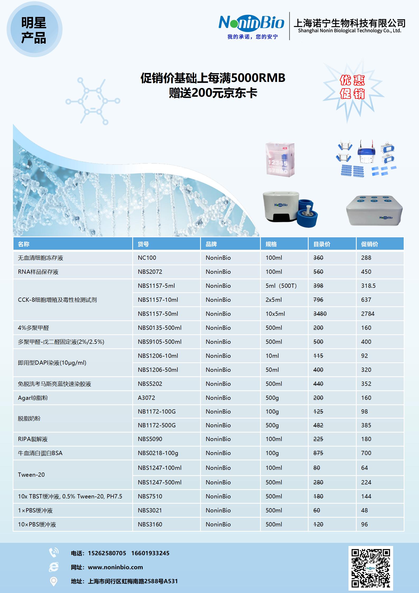 上海諾寧生物(wu)科(ke)技有限公(gong)(gong)司成立于2011年,是集(ji)研發銷售為(wei)一體的(de)綜合性公(gong)(gong)司。公(gong)(gong)司不僅(jin)有代(dai)理的(de)國(guo)內外知名(ming)品牌的(de)產品,還有自主(zhu)品牌“NoninBio”的(de)產品,產品涉及試劑、耗材、儀(yi)器,涵蓋(gai)分子生物(wu)學、細胞(bao)生物(wu)學、免疫學、信號傳導和神經科(ke)學等(deng)領(ling)域,可以為(wei)客戶提(ti)供全面(mian)的(de)解決方案。