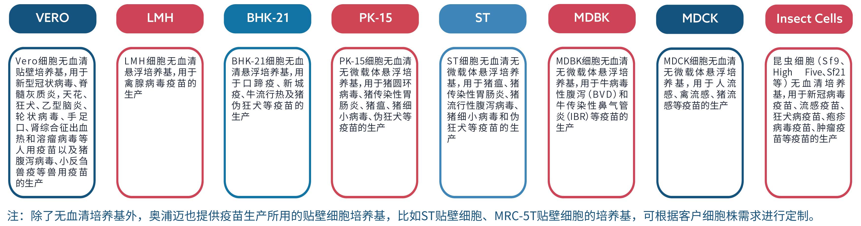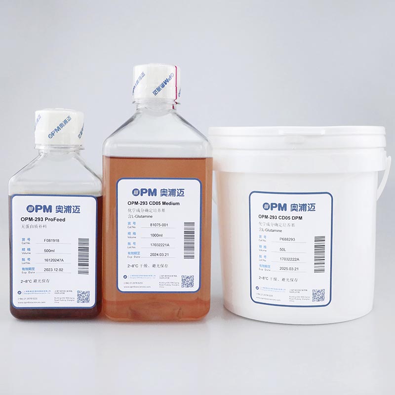 CHO細胞是抗體和重組蛋白表達的重要平臺,目前大多數治療性抗體藥物的生產都是通過CHO細胞大規模培養來實現的。為了更好滿足國內外生物制藥公司對高品質CHO細胞培養基的迫切需求,奧浦邁針對不同類型的CHO細胞(CHO-K1、CHO-DG44、CHO-S和CHOZN等)開發了多款基礎培養基、補料培養基、超濃縮補料與添加劑。通過專門的設計和DOE優化,OPM的化學成分確定培養基可以支持并最大程度地促進高密度懸浮培養中CHO細胞系的生長和蛋白抗體表達。